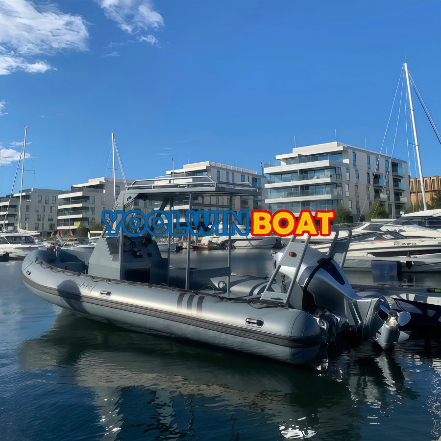 760 patrol RIB boat designed for professional military rigid inflatable boat(RIB). Perfect size and model fr law enforcement/ military/ army forces. Boat designed with super large center console and 4 units jockey seats. Front super large deck space, also can equip with rescue and search (SAR) equipments, or diving accessories or oxygen tank holders. Boat can equip with twin outboard motor, max power 250HP, powerful and fast speed.