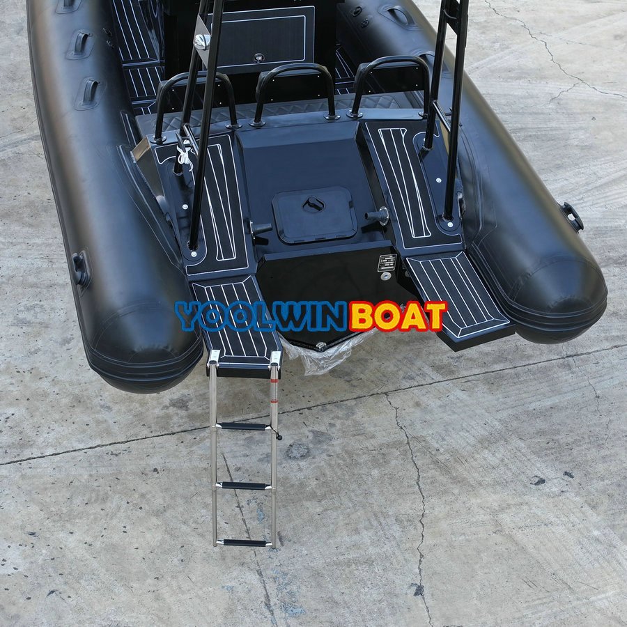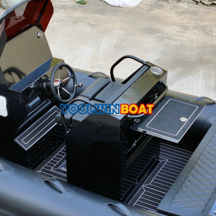 SP580 Aluminum RIB Boat, designed with super large center console and driver seat. Center console with larger size easy to be operated, driver seat with back dining table and cup holders, suitable for family leisure/ water sports inflatable boat. Also boat stern equip with diving platform with ladder, suitable to load on or off the boat. Middle-sized RIB boat, multi-functional usage, can also be yacht or catamaran boat tender or dinghy boat. Whole boat accept customied design and strucutre, center console/ driver seat model, tube material, whole boat color or logo customization.