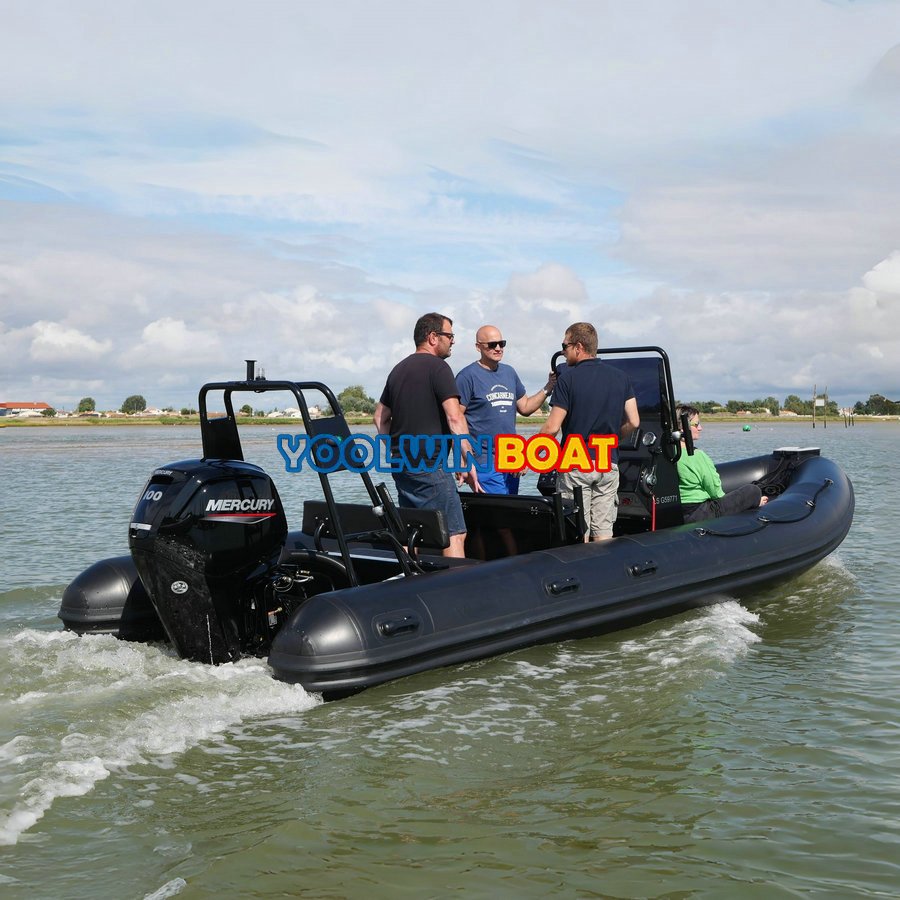 20ft Semi Rigid Inflatable Aluminum RHIB boat, designed with luxury center console and driver seat. Ideal for family leisure/ water sports boats. Power coasted aluminum hull made from Aluminum 5083 by CCS, better for corrosion resistance and suitable be to used for different water conditions, salt sea/ lakes/ rivers. 5.8m inflatable boat (RIB/ RHIB) with better performance and stability, great for coastal cruising/ fishing/ water fun. Tube accept customization for PVC/ Hypalon/ Orca. Whole boat structure with deep V hull and heavy duty tube, easy to be operated, suitable for both beginners or experienced drivers.