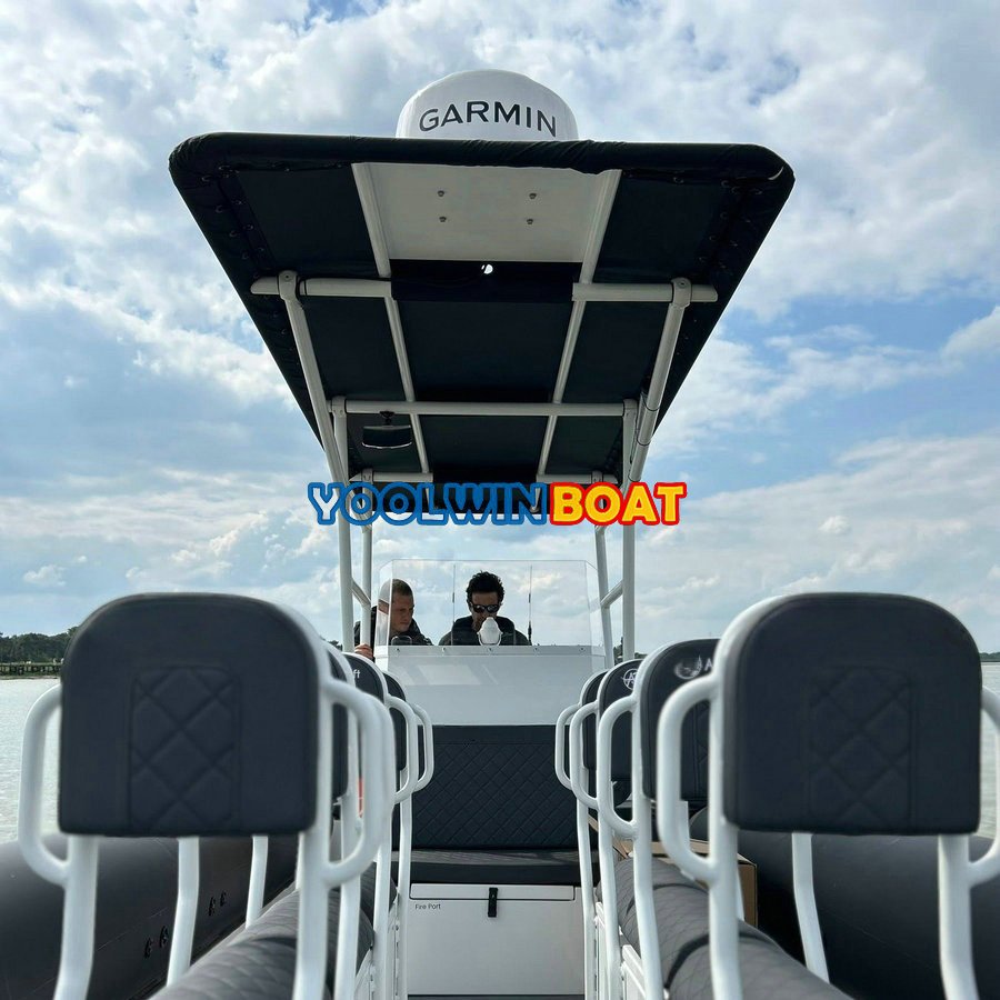 Does 800 rigid inflatable fiberglass boats equip with super large Hard T-top to protect tourists from hot sun and high UV?
